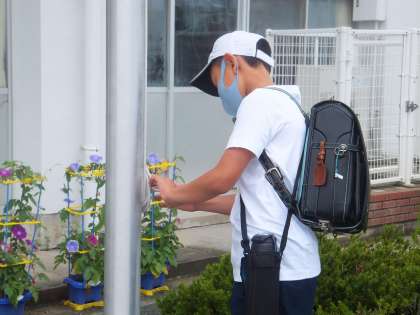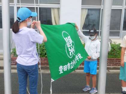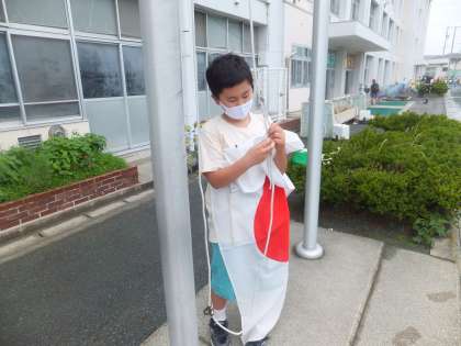 今朝も国旗・市旗・校旗を掲げてくれました。いつもご苦労様です。