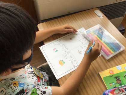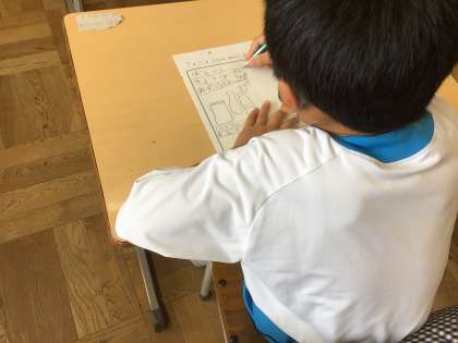 「なつとなかよし」の学習で、自分がやりたい夏ならではの遊びを決めました。今日は、その計画です。