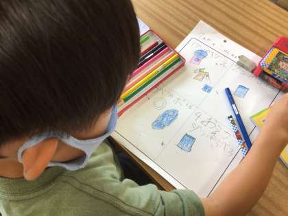 計画を立ててみると、持ち物がいっぱいです。おうちの人に分かる様に、絵も描きました。