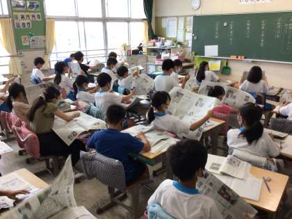 山本新聞店さんにご協力をいただき、5年生の全員分の新聞をいただきました。