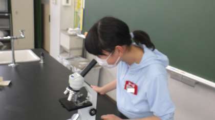 顕微鏡を使って、ホウセンカの葉の気孔を観察しました。