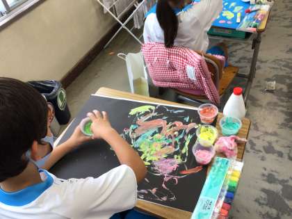 とろとろ絵の具にいろんな絵の具を混ぜて