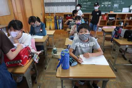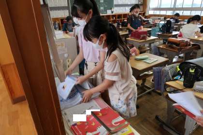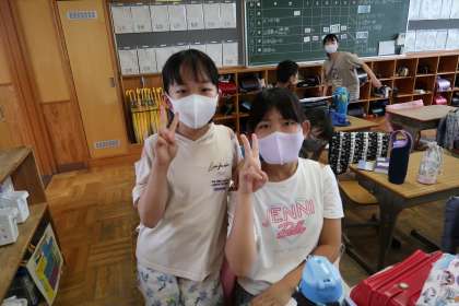 1組の朝の様子です。宿題を提出したり、翌日の連絡を連絡帳に記入したりしています。