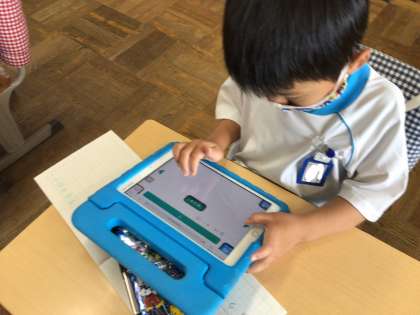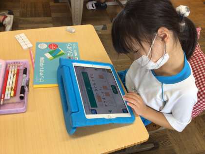 10より大きい数の学習の様子です。iPadで練習問題に取り組んでいます。