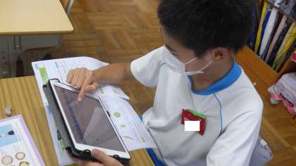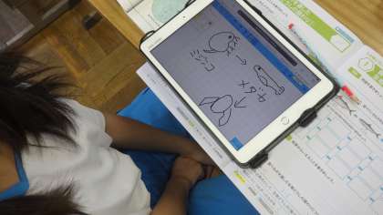 食べる・食べられる関係をiPadで調べ、iPadのノートに書いていきました。