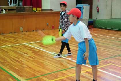 3組は、6時間目に行いました。暑くなってきたので、冷風装置を使って行いました。2試合目です。