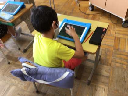 大きくなったあさがおの観察です。今日は、とっても暑い日なので、ipad を使って活動しました。