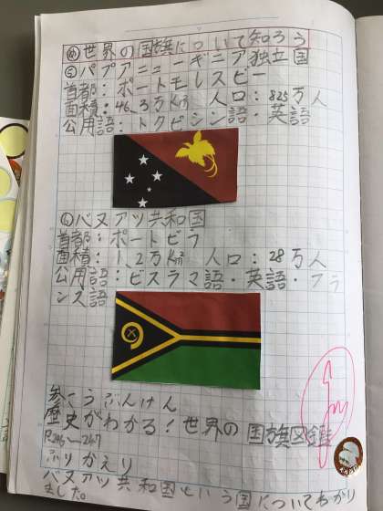 下の子は、世界の国旗について毎回少しずつまとめています。