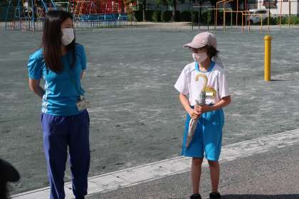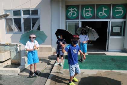 本日の朝の様子です。初めて5年生が6年生と同じ場所で挨拶ボランティアを行いました。5年生も、ボランティア後にミーティングをしています。