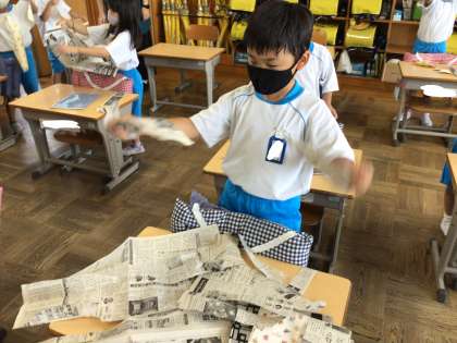 「やぶいたかたちからうまれたよ」の学習の様子です。