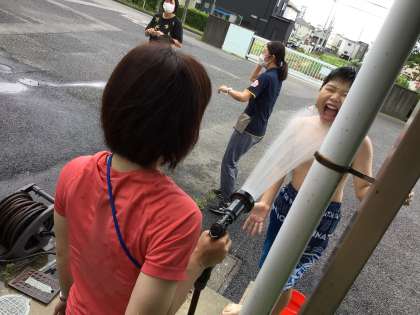 3時間目に水遊びをしました。