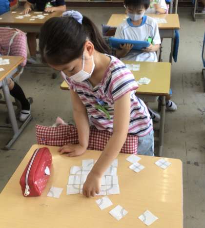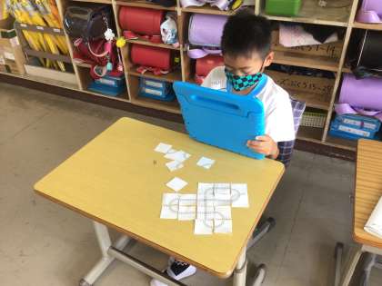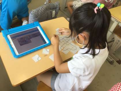 組み合わせ方を工夫して、いろいろな線路を作りました。