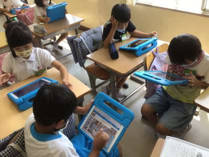 グループワークで班の友達と作品を見せ合いました。