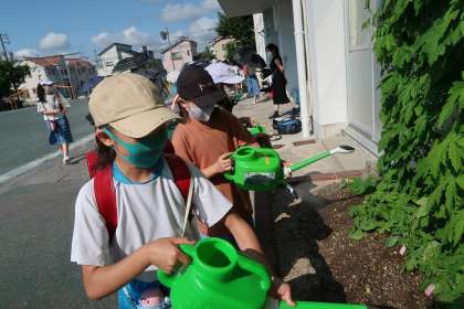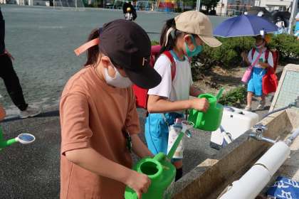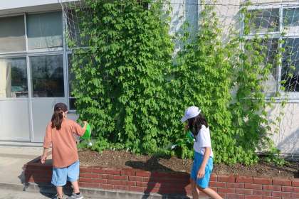 4年生の子が毎日、ツルレイシに水やりを行ってくれたお陰で、とても大きくなりました。