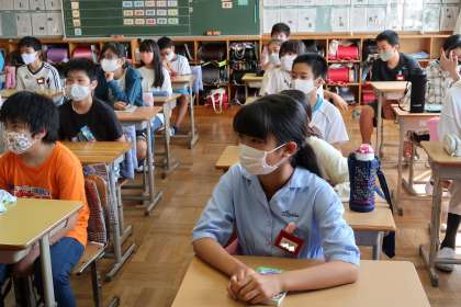 全校集会では、夏休みに安全に過ごすための話がありました。命を大切にしましょう。