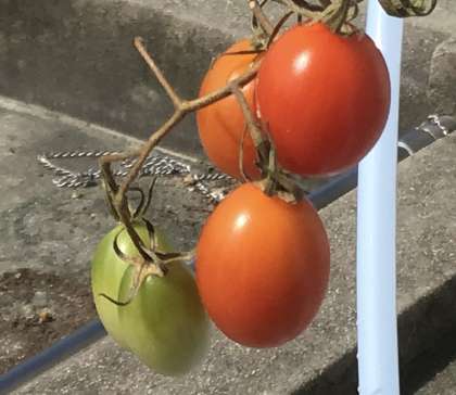 先生のトマトが赤くなりました。まだまだ収穫ができそうです。