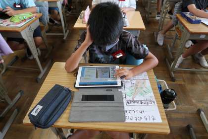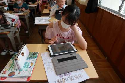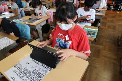 今日の国語の授業では、防災ポスターを作成しました。5年生の時に社会の授業で学んだ災害を思い出しながら防災を考えました。
