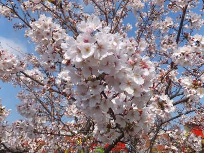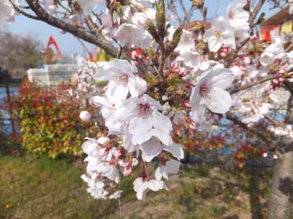 今年の春休みに咲いていた桜の様子です。体育館裏にはたくさんの桜が咲いていました。
