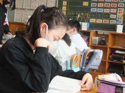 5月25日の6年生の休み時間です。友達と話をしたり、読書をしたりしています。