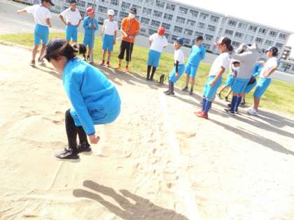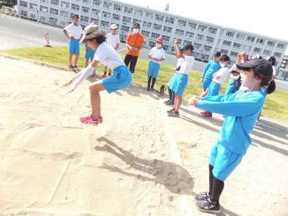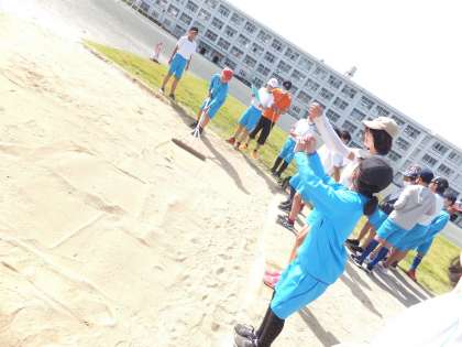 翌日の体育の授業です。立ち幅跳びの練習をしました。跳んでいるところです。
