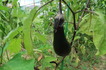 なかよしさんが育てているナスです。とても艶のある立派なナスが実っていました。