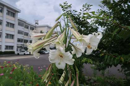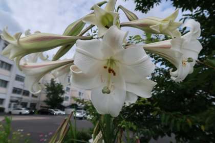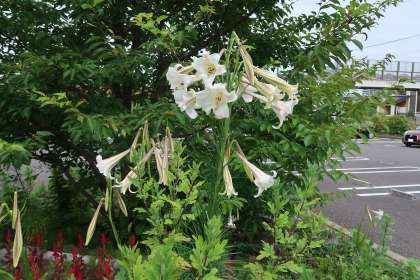 今、咲いているお花です。大きなユリの花です。駐車場の中央に咲いています。