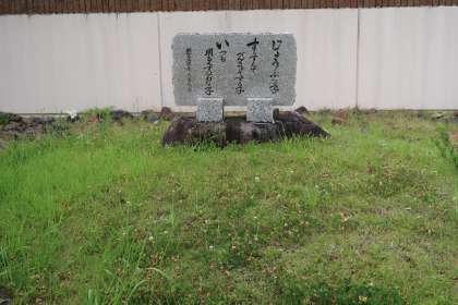 正門の様子です。「じょうぶな子 すすんでべんきょうする子 いつも明るくすなおな子」と書かれています。