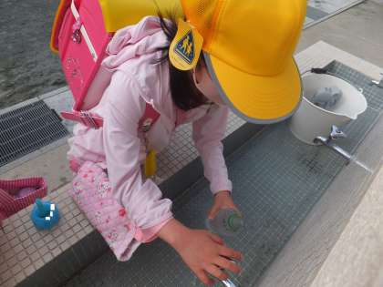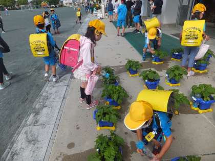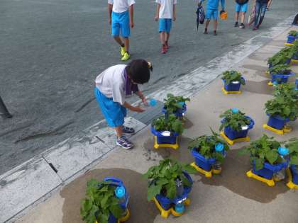 6月7日の朝の様子です。毎日、アサガオに水やりを行っていました。1ヶ月後には、立派な花を咲かせていました。