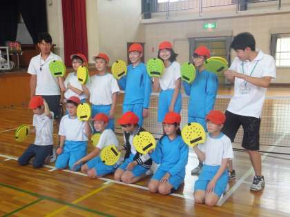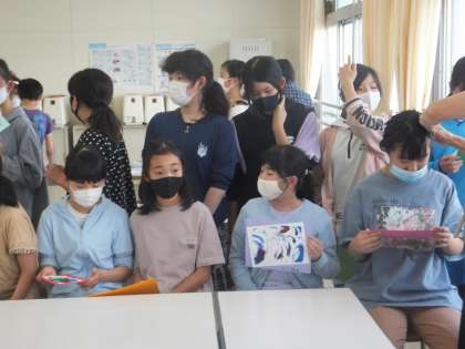 アートクラブでは、自分の作品を手に持って卒業アルバム用の写真を撮影しました。テニピンクラブでは、テニピンの道具を手に持っていました。