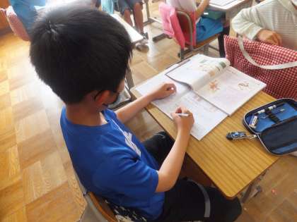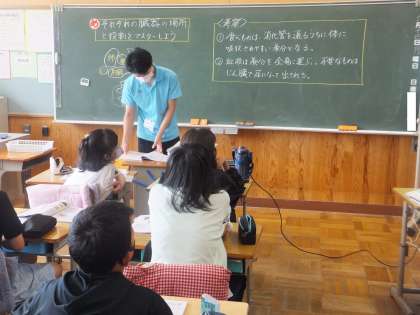 6月14日の理科の授業の様子です。人の臓器の場所とその役割について学んでいました。