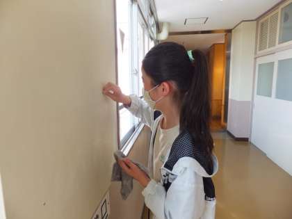 委員会の様子です。美化委員会では、校内美化に努めていました。また、VS委員会では、集まったペットボトルキャプの個数を数えていました。