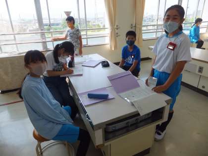 この日の学級活動は、わくわく遊びの内容を考えていました。各班ごとに分かれて真剣に話し合っていました。