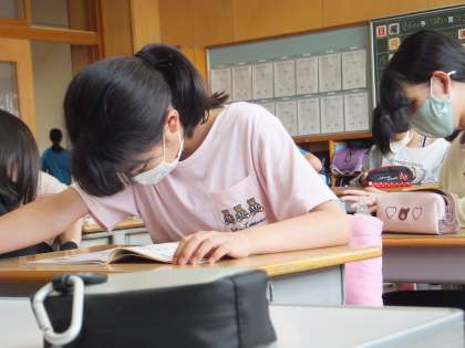 給食を食べた後の様子です。清掃活動の時間まで静かに過ごしていました。