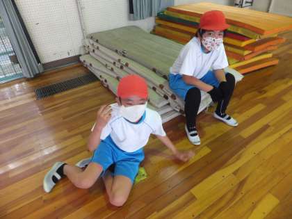 久し振りの学級レクリエーションでした。水分補給をしながら行いました。とても楽しんでいました。