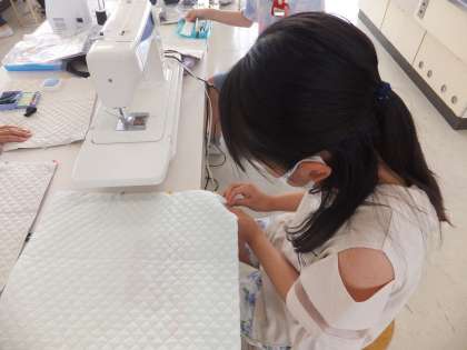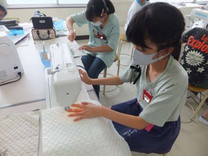 1組の授業の様子です。上手な子は、もうミシンを使い始めていました。