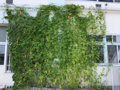 明後日から登校再開です。みなさん、元気に過ごしていますか?花壇のツルレイシも、みなさんを待っていますよ。7月の頃と比べると、ずいぶんと様子が変わってきました。ちがいが分かるかな?