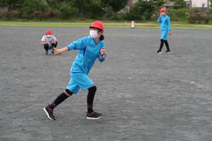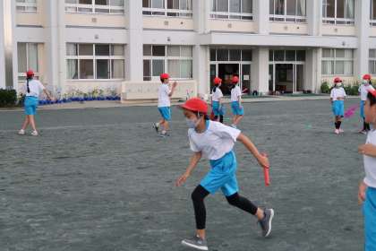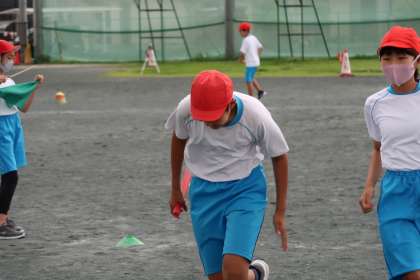 2組の体育の授業の様子です。3組と同じく50mリレーの練習を行っていました。