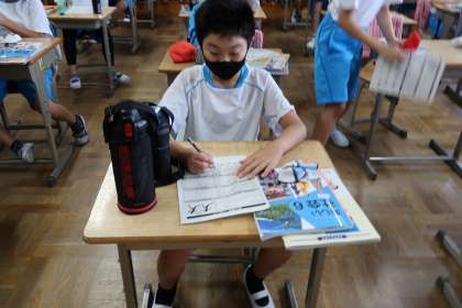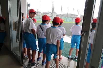 授業の途中から、雨が降ってきました。いつもより早い時間に教室に戻り、練習の振り返りをしました。