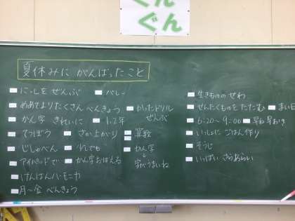 夏休みのめあてをふりかえり、