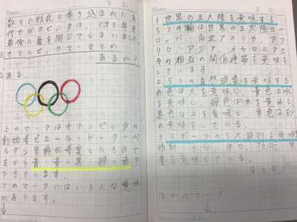 オリンピックやパラリンピック、世界について興味をもち、学習する子が多くいました。
