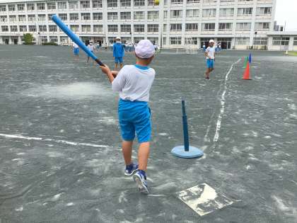 ベースボール型ゲームに挑戦しました。コロナ対策をしつつ、楽しく体を動かそう!