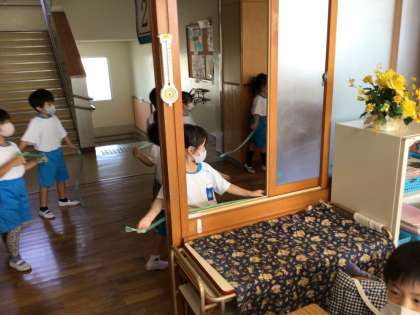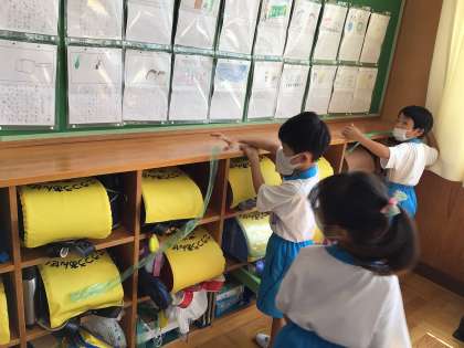 「おおきさくらべ1」の学習の様子です。テープを使っていろいろな物の長さを比べました。