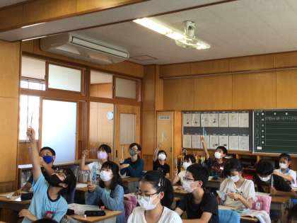 家庭科の授業で、風通しのよい窓の開け方について、吹き流しを使って学習しました。