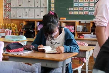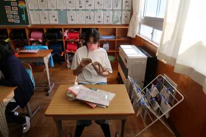 休み時間の様子です。静かに過ごしています。4組は読書をしている子が多いです。