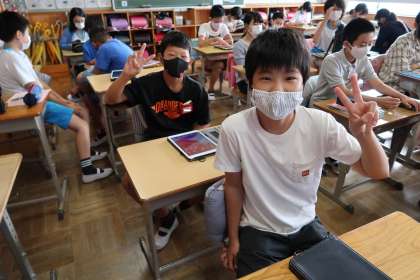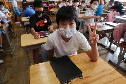 本日の0限の様子です。学習用タブレットを使う機会が増えました。