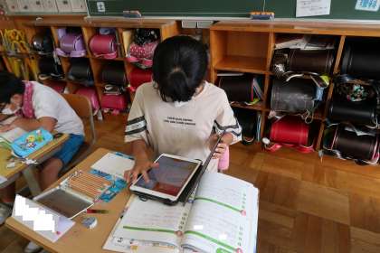 この授業でも学習用タブレットを使っていました。