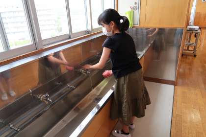 清掃活動の様子です。使い終わった雑巾を丁寧に整頓しています。