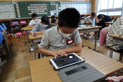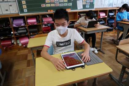 学習用タブレットにダウンロードしてあるアプリを使いました。