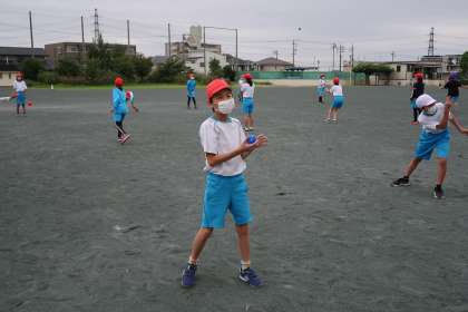 3組の体育の授業です。今回の単元はティーボールです。キャッチボールの練習をしました。