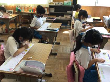 新しい漢字を学習しました。丁寧に書いています。